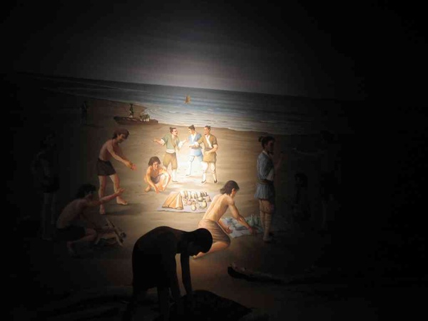 當時為求復原圖的逼真與生動,繪製者除了設定時間及場景,親自志八里海灘取景攝影外,並聘請演員充當原住民,扮演劇場中的角色,以進行拍攝紀錄,再依據其成果繪製。
