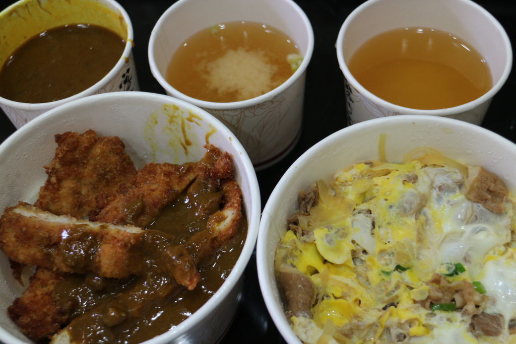 在牛肉蛋花飯都快吃完之時~豬排咖哩飯才姍姍來遲呀!