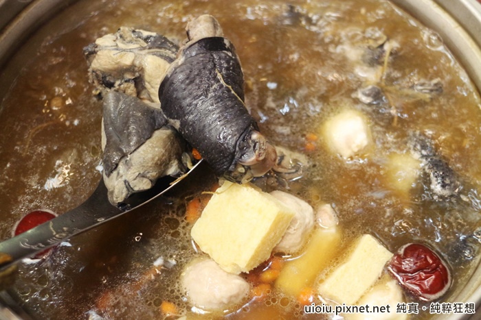 這次烏蔘雞改為內用,不知道是不是烏蔘雞有不斷的滾過,中樂材的香氣有與烏蔘雞融合為一,這次的湯頭比較濃醇~~
